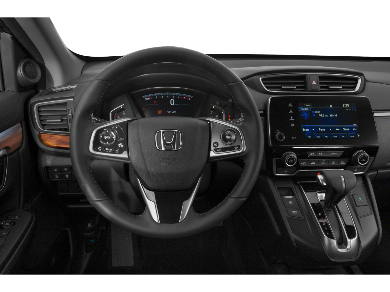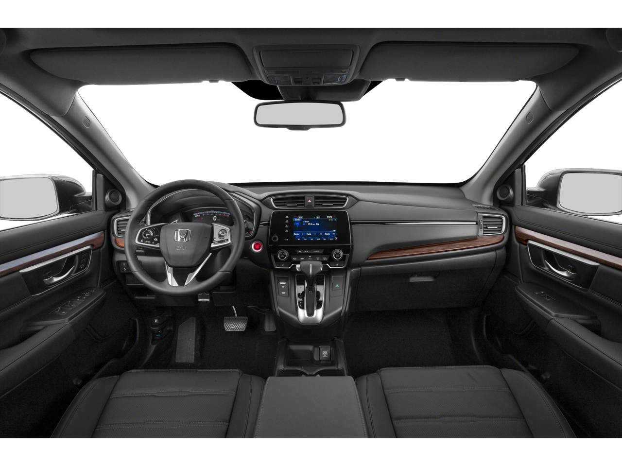 This CR-V also boasts a host of convenience and comfort-enhancing amenities, such as Fully automatic headlights, Heated door mirrors, Power door mirrors, Spoiler, Turn signal indicator mirrors, Apple CarPlay/Android Auto, Auto-dimming Rear-View mirror, Illuminated entry, Leather Shift Knob, Heated Front Bucket Seats, Heated front seats, Leather Seat Trim, Power passenger seat, and 18 Alloy Wheels.