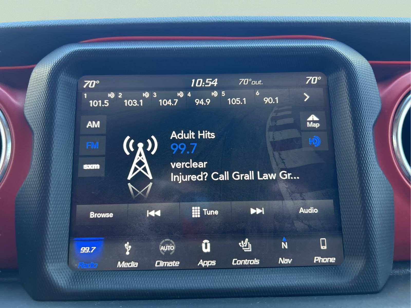 - Radio w/Seek-Scan, Clock, Speed Compensated Volume Control, Aux Audio Input Jack, Steering Wheel Controls, Voice Activation, Radio Data System and Uconnect External Memory Control