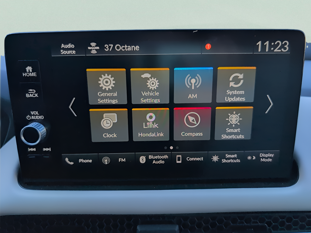- Radio: 180-Watt Audio System w/8 Speakers -inc: 9-inch color touchscreen, wireless Apple CarPlay and Android Auto compatibility, Bluetooth® HandsFreeLink and streaming audio, 2.5-amp USB-A smartphone/audio interface port in front console, HD Radio, Qi-compatible wireless phone charger, HondaLink, SMS text message function, Radio Data System (RDS) and Speed-Sensitive Volume Compensation (SVC), SiriusXM, SiriusXM requires a subscription after any trial period, If you decide to continue your SiriusXM service at the end of your trial subscription, the plan you choose will automatically renew and bill at then-current rates until you call SiriusXM at 1-866-635-2349 to cancel, See our customer agreement for complete terms at www.siriusxm.com, Fees and programming subject to change, Available in the 48 contiguous United States and D.C, SiriusXM and all related marks and logos are trademarks of SiriusXM Radio Inc