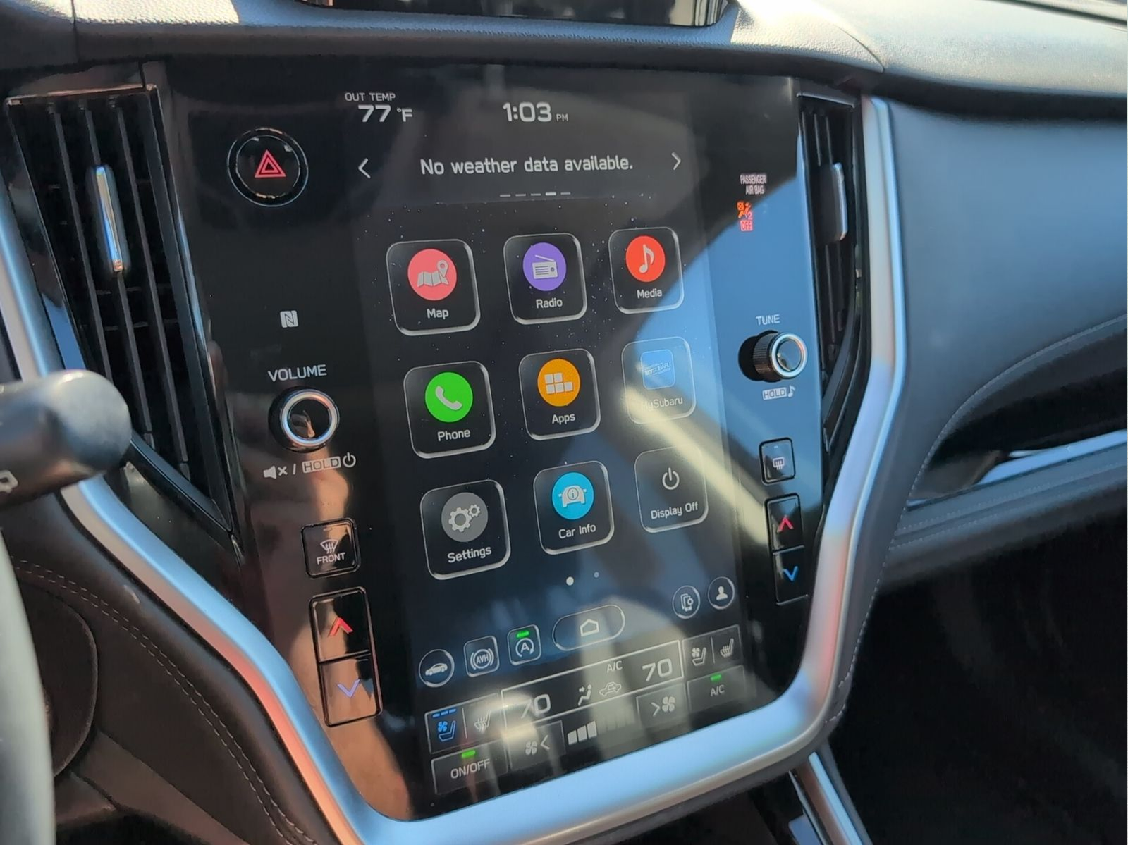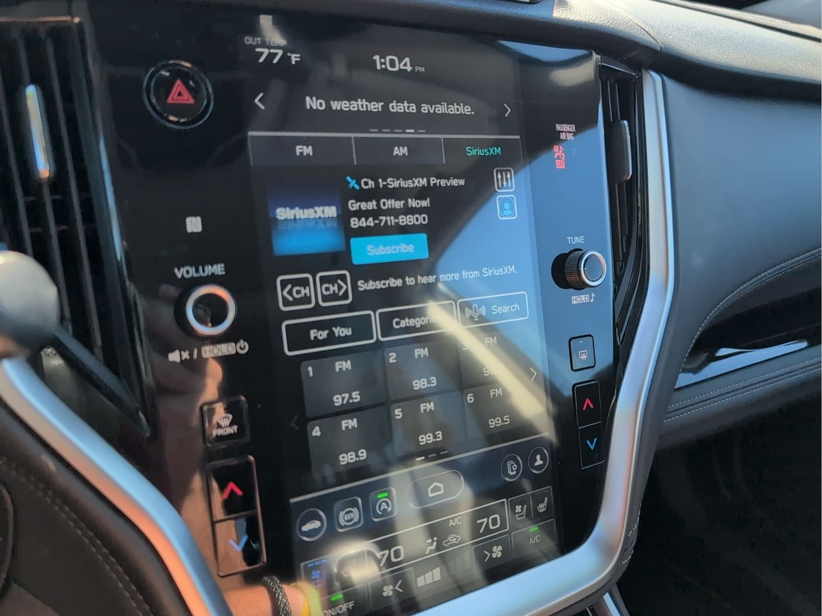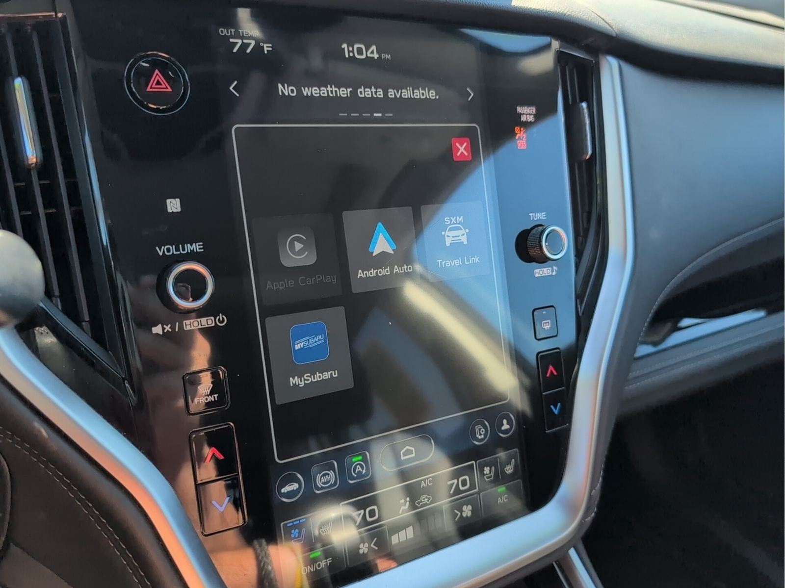 - Radio: Subaru STARLINK 11.6" Multimedia Nav System -inc: AM/FM stereo, HD Radio, CD player w/MP3/WMA/CRR/RW file capability, valet mode, multi-touch gesture high resolution display screen, voice activated controls and navigation, Bluetooth® audio streaming and hands-free phone connectivity w/SMS text messaging (refer to subaru.com for cell phone compatibility), Near Field Communication (NFC), TomTom navigation software w/What3words, iPod control capability, SiriusXM 360L Platinum trial (4 months free trial/subscription required after), SiriusXM Traffic (3 years free trial/subscription required after), SiriusXM Travel Link (3 years free trial/subscription required after), smartphone integration: Android Auto and Apple CarPlay w/full screen view and wireless connection and STARLINK cloud applications (refer to subaru.com for app availability), USB and Over The Air (OTA) audio system update, USB/Map Over The Air (MOTA) TomTom navigation system update (3 years free map updates), audio system and Bluetooth® steering wheel control switches, 576 watt harman/kardon surround sound system w/12 speakers, illuminated 3.5mm auxiliary input jack and illuminated USB-A and USB-C input/charge ports SiriusXM Platinum trial available after launch, possibly October 2023.